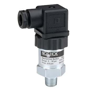 NOSHOK 300 Series Zinc Plated Steel Compact Mechanical Pressure Switch with Adjustable Hysteresis, SPDT, 1/4" NPT Male, 3-30 (870 psi) psi Pressure Range
