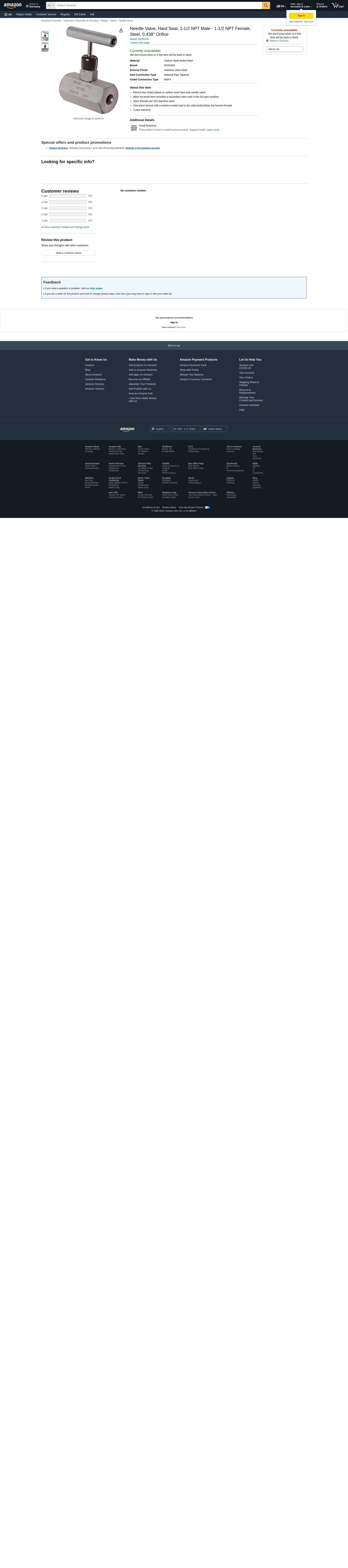 Needle Valve, Hard Seat, 1-1/2 NPT Male - 1-1/2 NPT Female, Steel, 0.438" Orifice