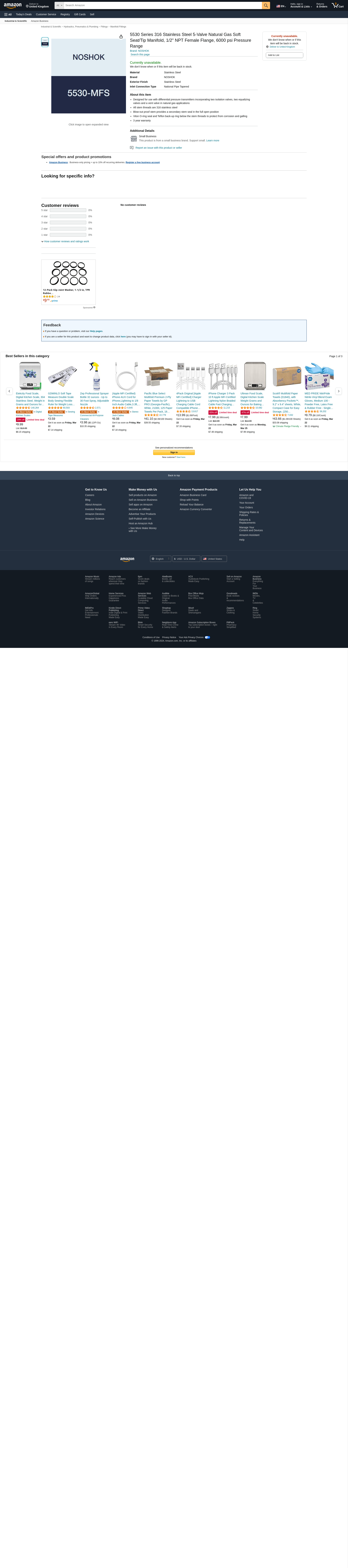 | Airline Hydraulics | NOSHOK 5530-MFS | 1 | 1 | 1 @ $733.34 | |