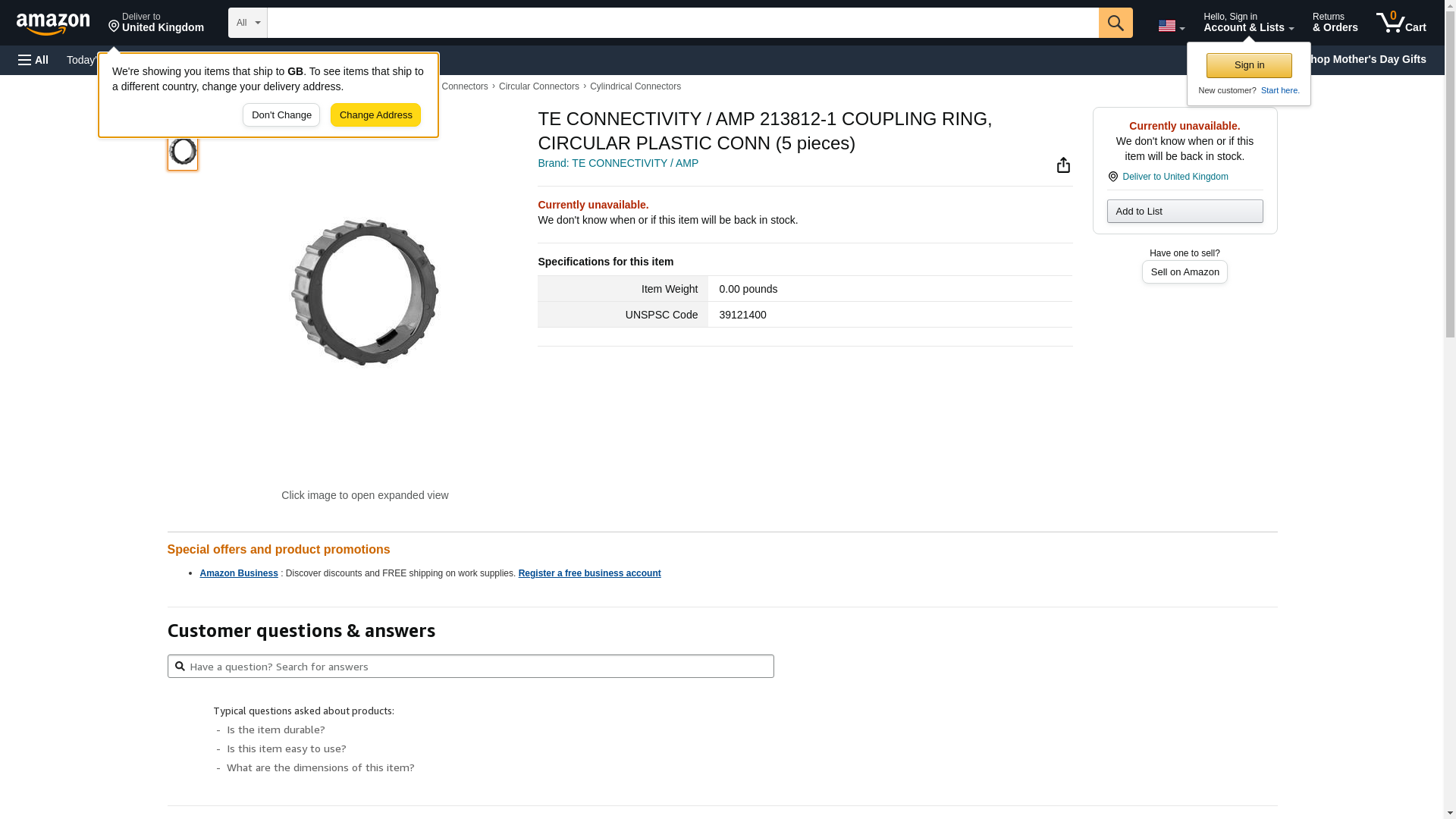 TE CONNECTIVITY / AMP 213812-1 COUPLING RING, CIRCULAR PLASTIC CONN (50 pieces)