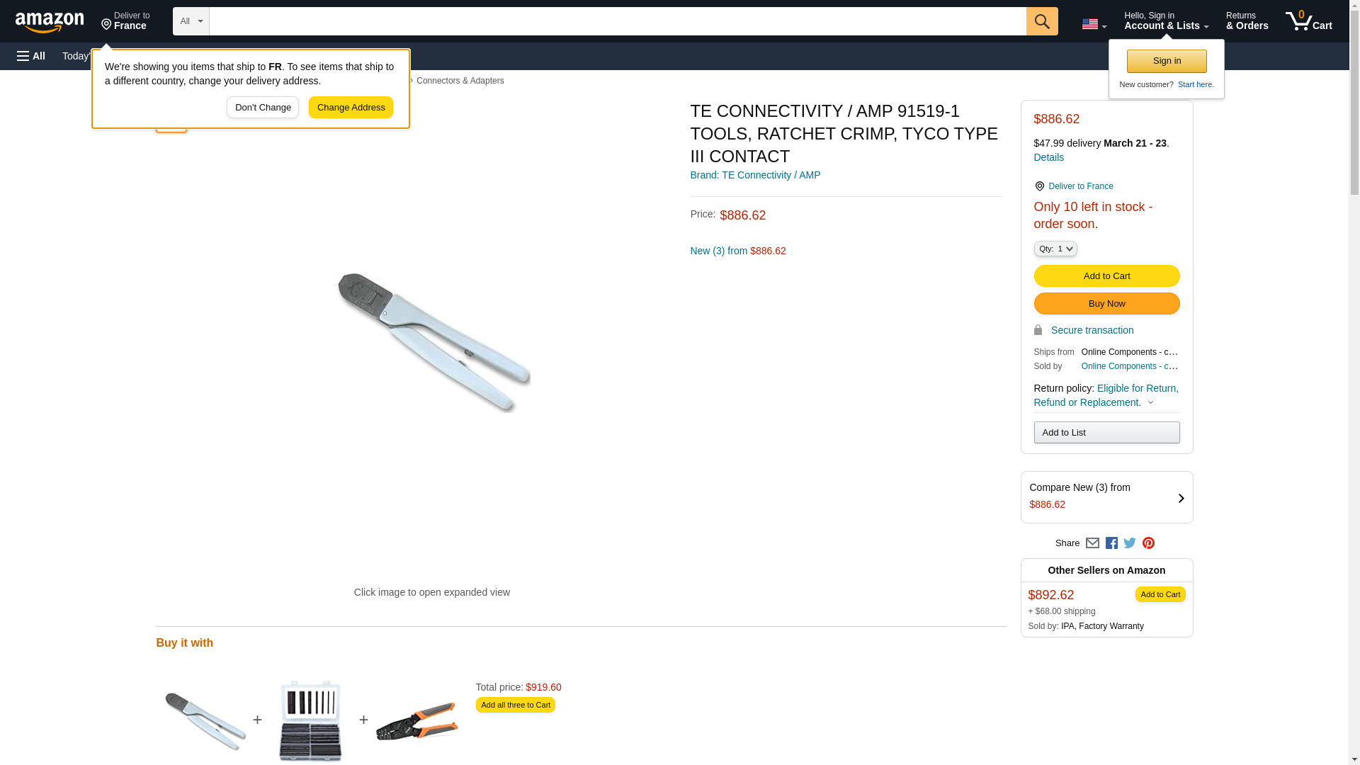 TE CONNECTIVITY / AMP - 91519-1 - TOOLS, RATCHET CRIMP, TYCO TYPE III CONTACT