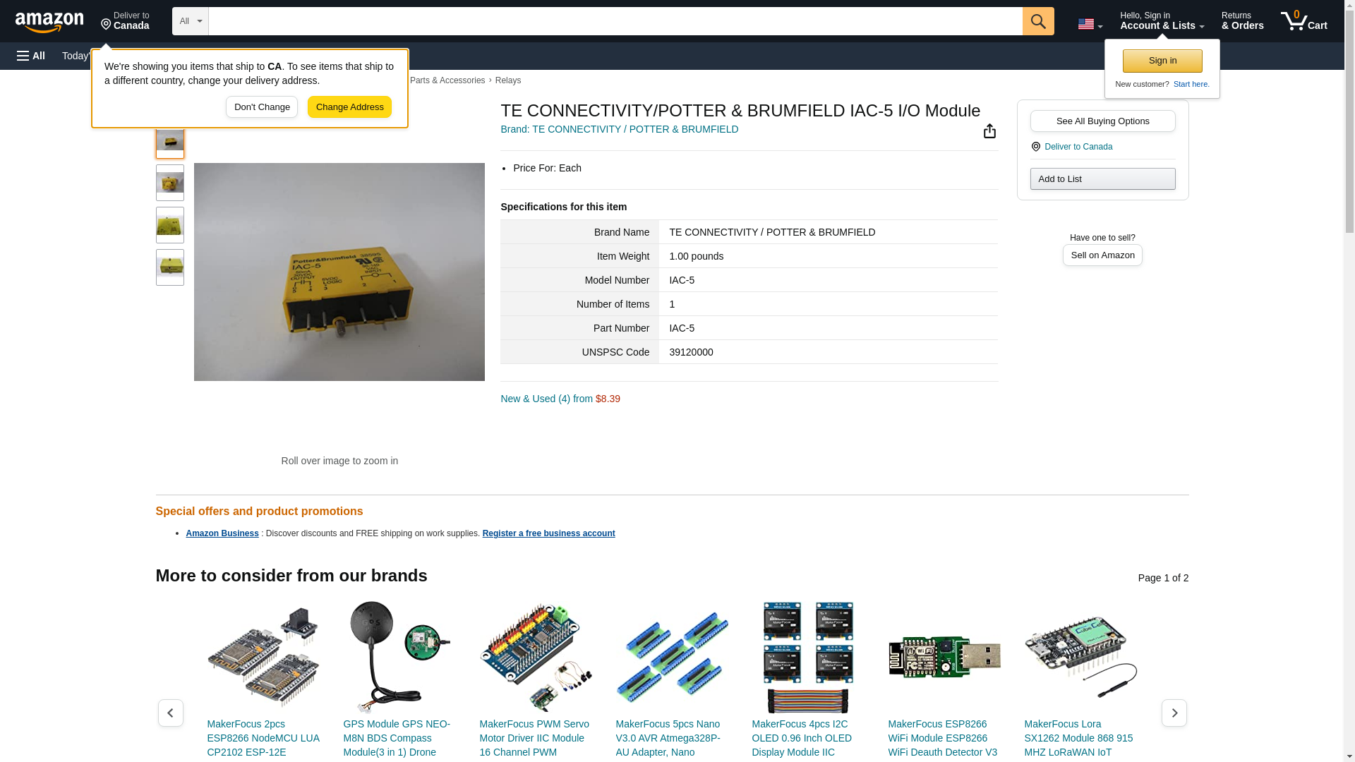 | Waldom | TE CONNECTIVITY POTTER-BRUMFIELD IAC-5 | 4 | 876 | 1 | 4 @ $14.62, 19 @ $14.35, 37 @ $14.08, 73 @ $13.81, 200 @ $13.54, 500 @ $12.40 |