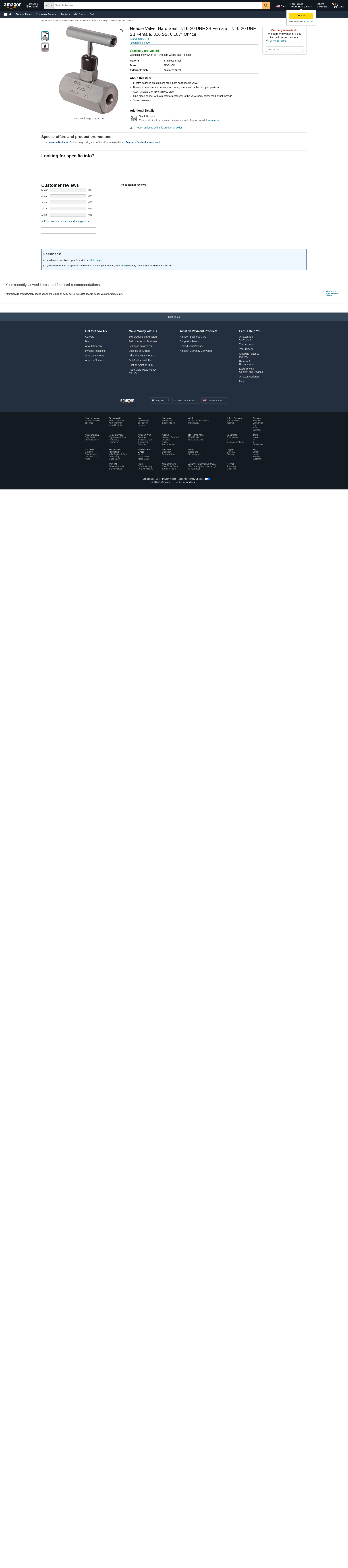 Needle Valve, Hard Seat, 7/16-20 UNF 2B Female - 7/16-20 UNF 2B Female, 316 SS, 0.187" Orifice