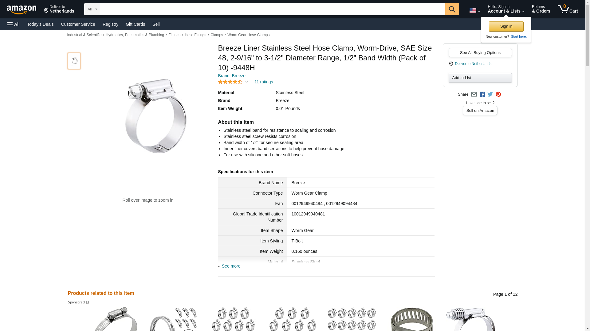 Breeze Liner Stainless Steel Hose Clamp, Worm-Drive, SAE Size 48, 2-9/16" to 3-1/2" Diameter Range, 1/2" Band Width (Pack of 10) -9448H