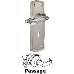Prairie Collection - Full Passage Set With Keyhole - Prairie Plate with Parlor Crystal Lever in Satin Nickel by Nostalgic Warehouse - 712441 | MyKnobs