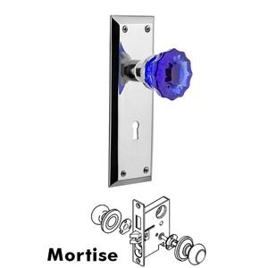 New York Collection - Nostalgic Warehouse - Mortise - New York Plate Crystal Cobalt Glass Door Knob in Bright Chrome by Nostalgic Warehouse - 726351 | MyKnobs