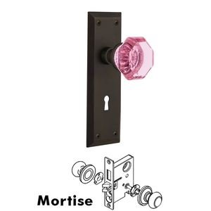 New York Collection - Nostalgic Warehouse - Mortise - New York Plate Waldorf Pink Door Knob in Oil-Rubbed Bronze by Nostalgic Warehouse - 726381 | MyKnobs