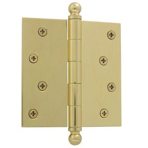 Residential Hinges Collection - 4" Ball Tip Residential Hinge with Square Corners in Polished Brass (Sold Individually) by Nostalgic Warehouse - 728360 | MyKnobs