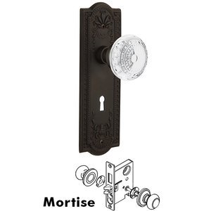 Meadows Collection - Mortise - Meadows Plate With Crystal Meadows Knob in Oil-Rubbed Bronze by Nostalgic Warehouse - 751978 | MyKnobs
