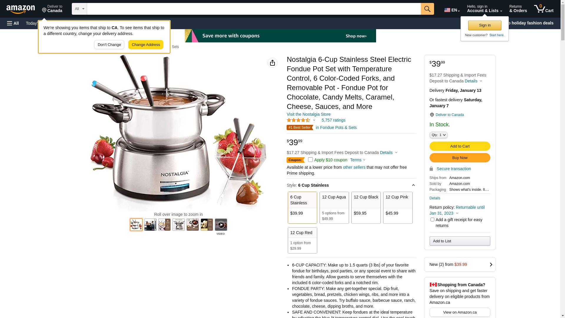 Nostalgia FPS200 6-Cup Stainless Steel Electric Fondue Pot with Temperature Control, 6 Color-Coded Forks and Removable Pot - Perfect for Chocolate, Caramel, Cheese, Sauces and More: Maxedbuy.com