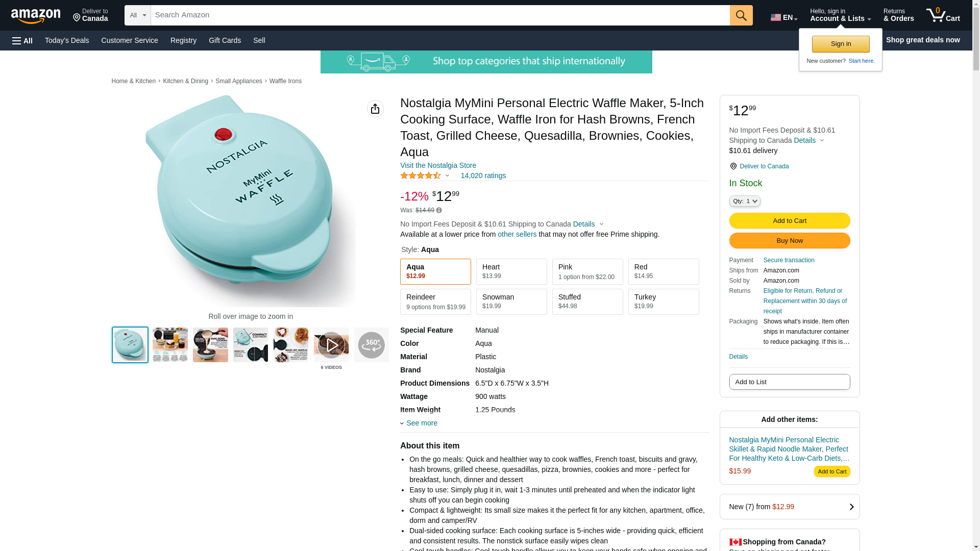 Nostalgia MWF5AQ MyMini Personal Electric Waffle Maker, Hash browns, French Toast Grilled Cheese, Quesadilla, Brownies, Cookies, Aqua: Maxedbuy.com