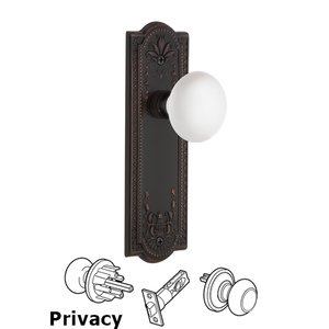 Meadows - Complete Privacy Set - Meadows Plate with White Porcelain Door Knob in Timeless Bronze - Nostalgic Warehouse 702680