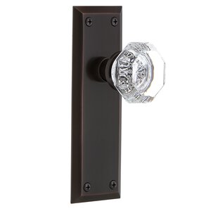 Nostalgic Warehouse New York Plate with Waldorf Crystal Knob, Passage - 2.375", Timeless Bronze