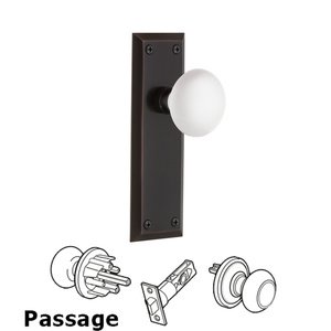 New York Collection - Complete Passage Set - New York Plate with White Porcelain Door Knob in Timeless Bronze by Nostalgic Warehouse - 700344 | MyKnobs