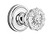 701198 Finish: Bright Chrome Features: -Hand assembled in USA. -Solid forged brass rosettes with genuine lead crystal door knobs for detail and clarity. -Passage: Ideal for closets, hallways or rooms where no locking mechanism is needed.. -Complete set for one door (both sides) with 2-3/8” backset. -Perfect for restoration and easy to install on modern pre-drilled doors. Country of Manufacture: -United States. Knob Function: -Passage. Style: -Traditional. Knob Shape: -Round. Door Type: -Exterior/Interior. Dimensions: Overall Product Weight: -3 lbs. Door Knob Diameter: -2.125". Overall Depth - Front to Back: -2.22".
