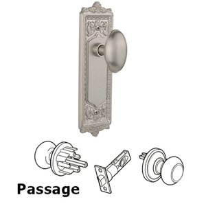 Egg & Dart Collection - Complete Passage Set Without Keyhole - Egg & Dart Plate with Homestead Knob in Satin Nickel by Nostalgic Warehouse - 704184 | MyKnobs