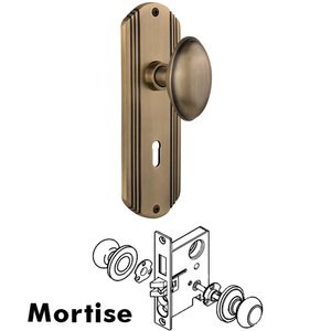 Deco Collection - Complete Mortise Lockset - Deco Plate with Homestead Knob in Antique Brass by Nostalgic Warehouse - 706342 | MyKnobs