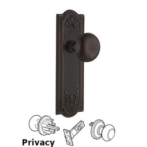 Meadows Collection - Complete Privacy Set - Meadows Plate with New York Door Knobs in Timeless Bronze by Nostalgic Warehouse - 707644 | MyKnobs