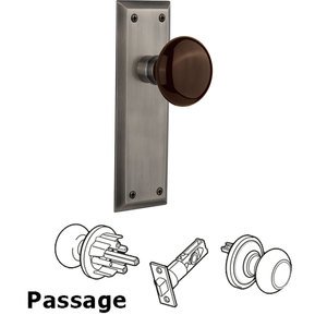 New York Collection - Passage New York Plate with Brown Porcelain Door Knob in Antique Pewter by Nostalgic Warehouse - 709315 | MyKnobs
