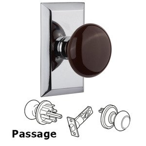 Studio Collection - Passage Studio Plate with Brown Porcelain Knob in Bright Chrome by Nostalgic Warehouse - 709744 | MyKnobs