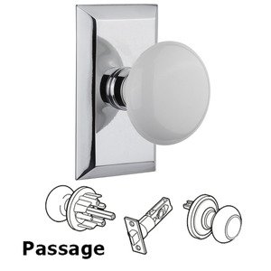 Studio Collection - Passage Studio Plate with White Porcelain Knob in Bright Chrome by Nostalgic Warehouse - 713299 | MyKnobs
