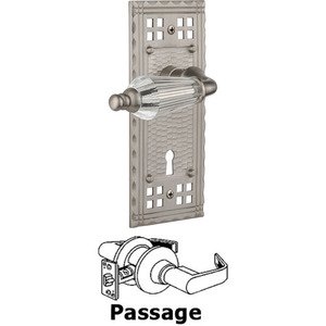 Craftsman Collection - Full Passage Set With Keyhole - Craftsman Plate with Parlor Crystal Lever in Satin Nickel by Nostalgic Warehouse - 714163 | MyKnobs
