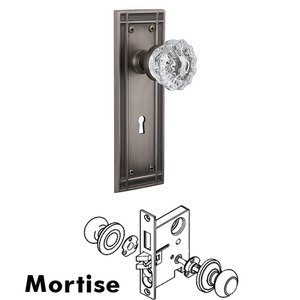 Mission Collection - Mortise Mission Plate with Crystal Knob and Keyhole in Antique Pewter by Nostalgic Warehouse - 716319 | MyKnobs