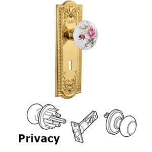 Meadows Collection - Privacy Meadows Plate with Keyhole and White Rose Porcelain Door Knob in Unlacquered Brass by Nostalgic Warehouse - 718449 | MyKnobs