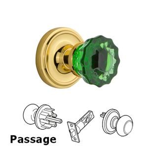 Classic Collection - Nostalgic Warehouse - Passage - Classic Rose Crystal Emerald Glass Door Knob in Unlaquered Brass by Nostalgic Warehouse - 720197 | MyKnobs