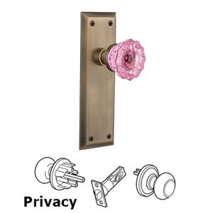 New York - Nostalgic Warehouse - Privacy - New York Plate Crystal Pink Glass Door Knob in Antique Brass - Nostalgic Warehouse 724732