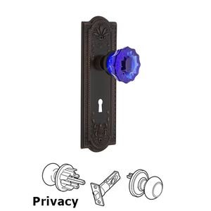 Meadows Collection - Nostalgic Warehouse - Privacy - Meadows Plate with Keyhole Crystal Cobalt Glass Door Knob in Timeless Bronze by Nostalgic Warehouse - 725566 | MyKnobs
