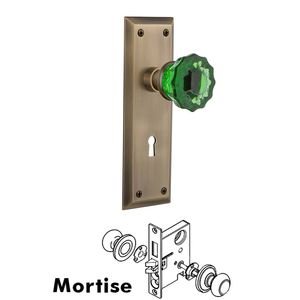 New York Collection - Nostalgic Warehouse - Mortise - New York Plate Crystal Emerald Glass Door Knob in Antique Brass by Nostalgic Warehouse - 726346 | MyKnobs