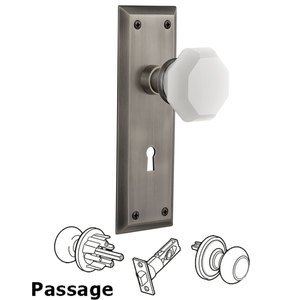 New York Collection - Passage - New York Plate with Keyhole with Waldorf White Milk Glass Knob in Antique Pewter by Nostalgic Warehouse - 748464 | MyKnobs