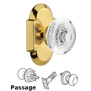 Cottage Collection - Passage - Cottage Plate With Crystal Egg & Dart Knob in Polished Brass by Nostalgic Warehouse - 750128 | MyKnobs