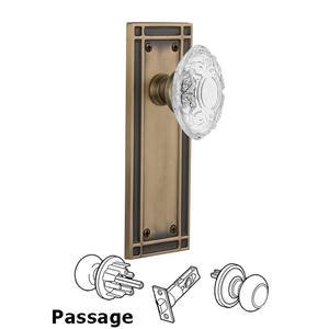 Mission Collection - Passage - Mission Plate With Crystal Victorian Knob in Antique Brass by Nostalgic Warehouse - 754052 | MyKnobs
