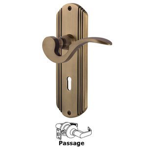 Deco Collection - Deco Plate Passage with Keyhole and Manor Lever in Antique Brass by Nostalgic Warehouse - 762239 | MyKnobs