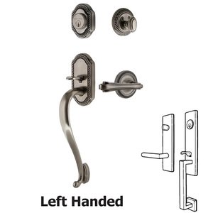 Nostalgic Warehouse 770945 Rope Plate S Grip with Left-Handed Fleur Lever Entry Set, Backset Size: 2-3/8", Antique Pewter