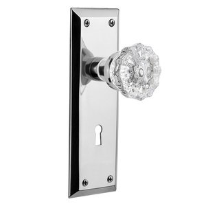 Nostalgic Warehouse New York Plate with Keyhole Crystal Glass Knob, Passage - 2.375", Bright Chrome