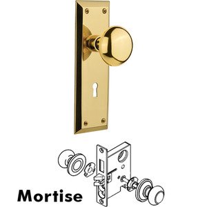 New York Collection - Mortise New York Plate with New York Knob and Keyhole in Unlacquered Brass by Nostalgic Warehouse - 703658 | MyKnobs