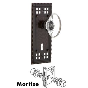 Craftsman Collection - Complete Mortise Lockset with Keyhole - Craftsman Plate with Oval Clear Crystal Glass Door Knob in Timeless Bronze by Nostalgic Warehouse - 703826 | MyKnobs
