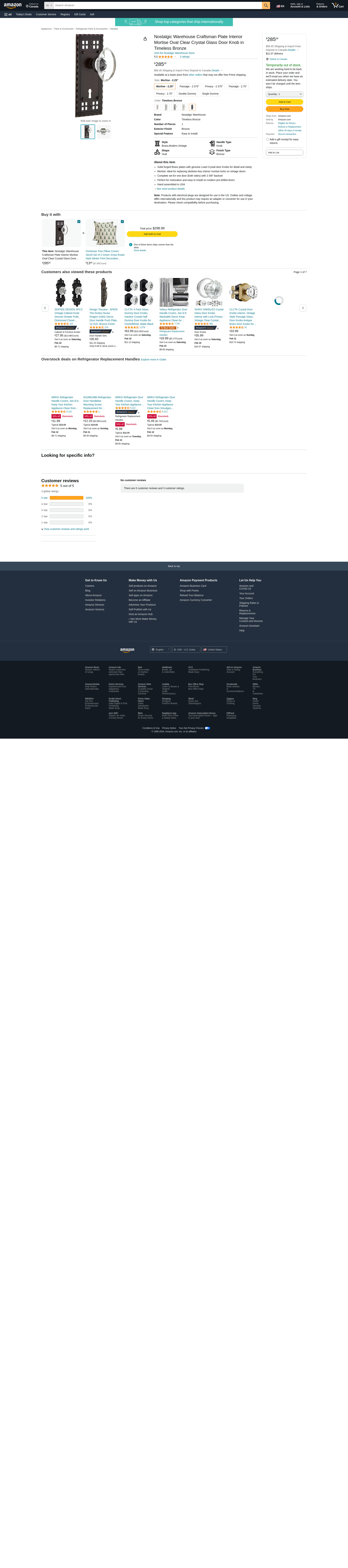Nostalgic Warehouse Craftsman Plate Interior Mortise Oval Clear Crystal Glass Door Knob in Timeless Bronze