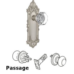 Victorian Collection - Passage Knob - Victorian Plate with Waldorf Crystal Door Knob in Satin Nickel by Nostalgic Warehouse - 704056 | MyKnobs