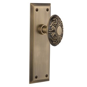 New York Collection - Passage New York Plate with Victorian Door Knob in Antique Brass by Nostalgic Warehouse - 705014 | MyKnobs