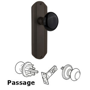 Deco Collection - Complete Passage Set Without Keyhole - Deco Plate with Black Porcelain Knob in Oil Rubbed Bronze by Nostalgic Warehouse - 705672 | MyKnobs