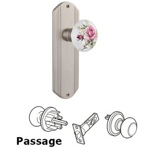 Deco Collection - Complete Passage Set Without Keyhole - Deco Plate with Rose Porcelain Knob in Satin Nickel by Nostalgic Warehouse - 705842 | MyKnobs