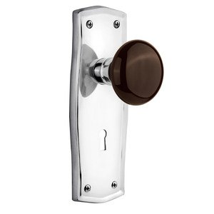Nostalgic Warehouse Prairie Plate with Keyhole Brown Porcelain Knob, Mortise, Bright Chrome