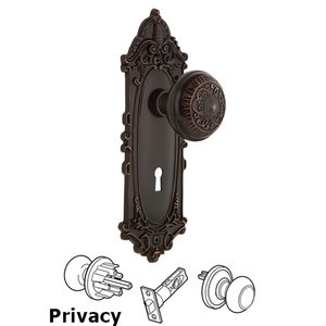 Victorian - Complete Privacy Set with Keyhole - Victorian Plate with Egg & Dart Door Knob in Timeless Bronze - Nostalgic Warehouse 707746