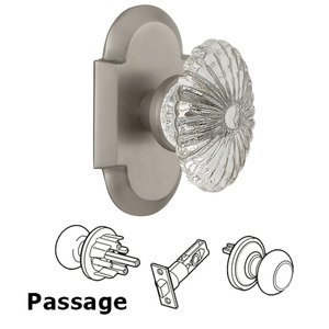 Cottage Collection - Passage Cottage Plate with Oval Fluted Crystal Knob in Satin Nickel by Nostalgic Warehouse - 708584 | MyKnobs