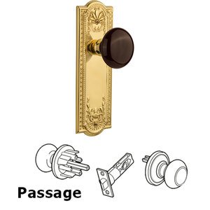 Nostalgic Warehouse Meadows Plate with Brown Porcelain Knob, Passage - 2.75", Unlacquered Brass
