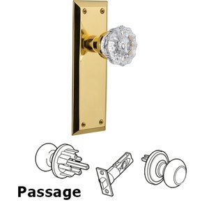 New York Collection - Passage New York Plate with Crystal Glass Door Knob in Polished Brass by Nostalgic Warehouse - 709339 | MyKnobs
